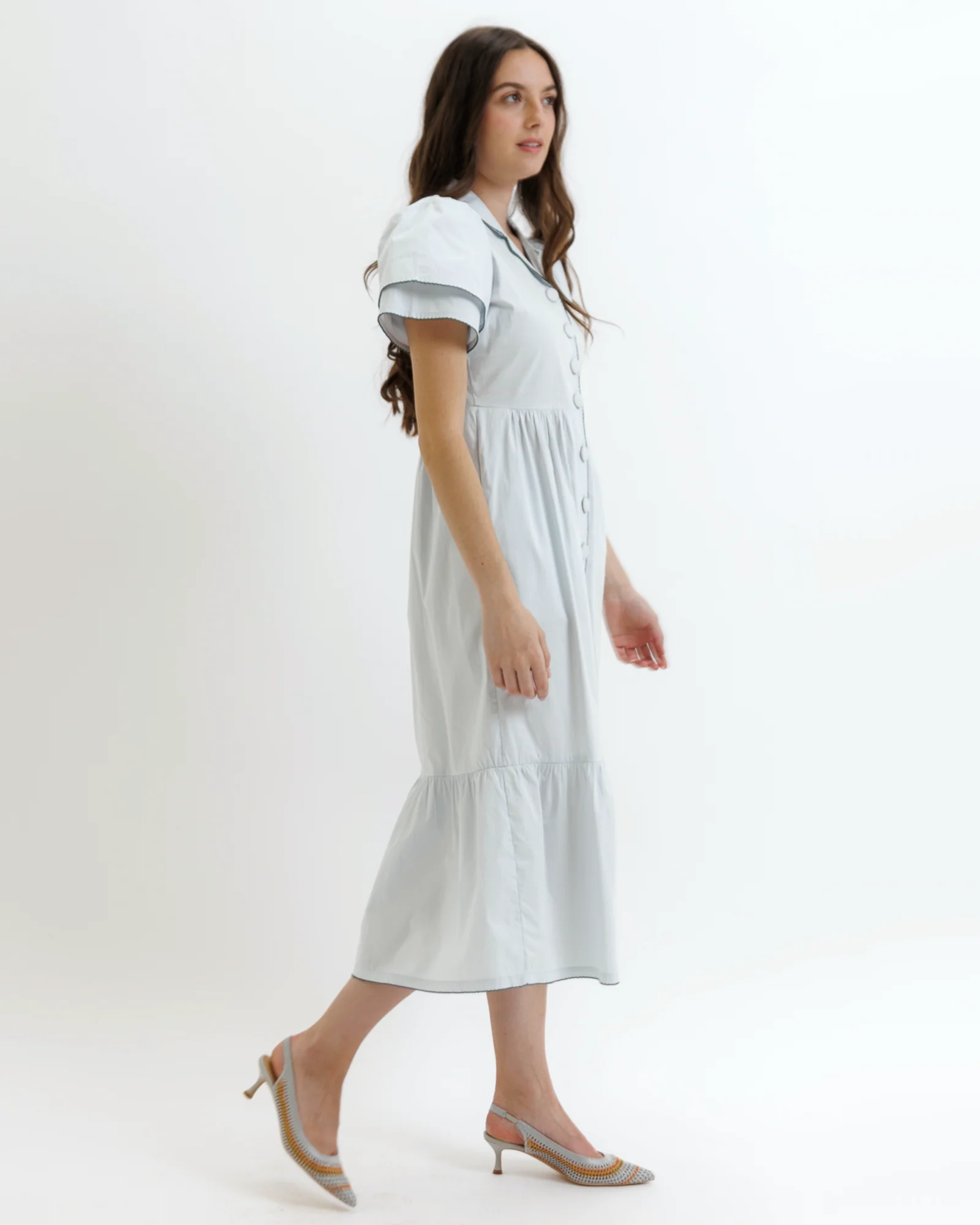 - Midi-length, tiered skirt
